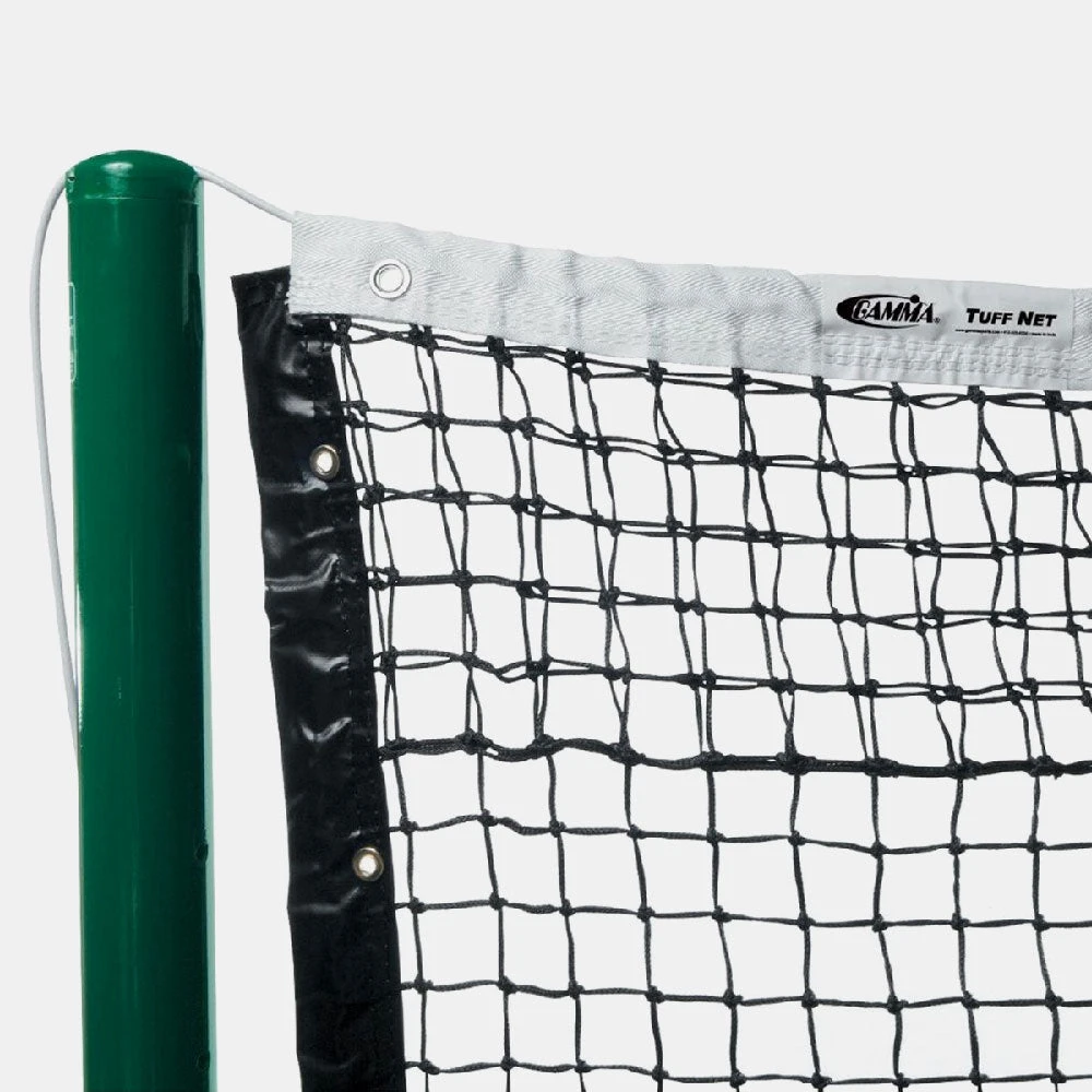 The Gamma Tuff Vinyl net gets its name from the all-weather vinyl, UV protected and mildew resistant headband. That plus double netting on the top six rows will ensure a net that can handle the weather and tough matches. Recommended for year-round outdoor use in all climates, hard or soft court, and indoor play.