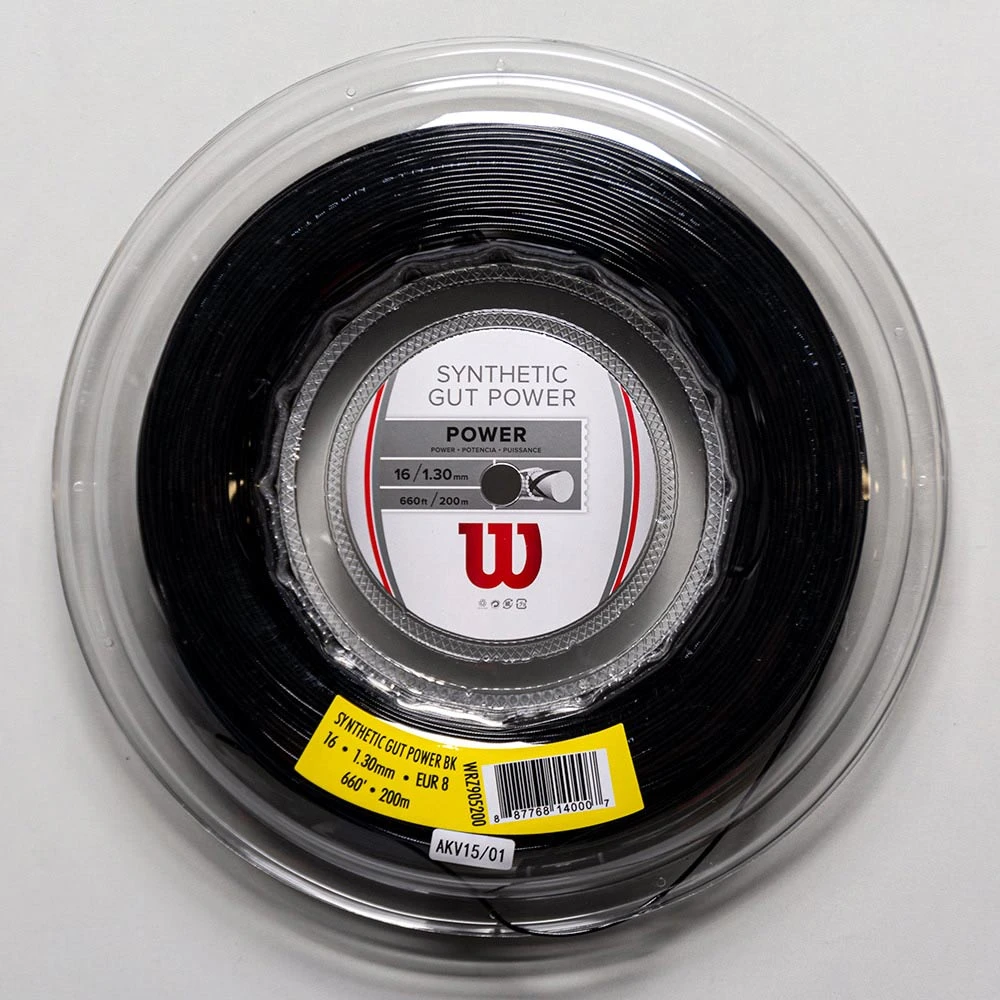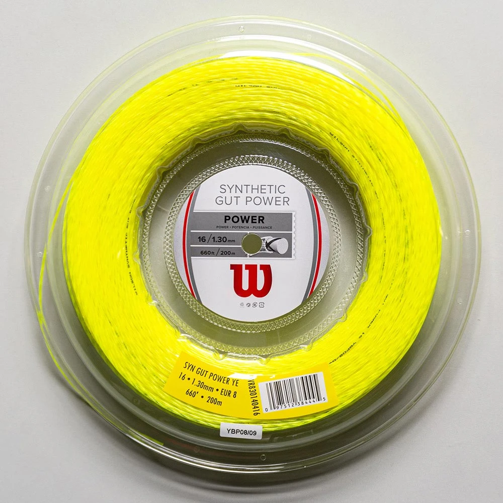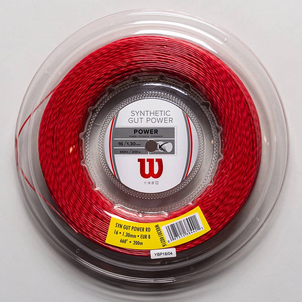 Wilson Synthetic Gut Power 16 tennis string combines durability and power. A high energy wrap contributes to the tough structure.