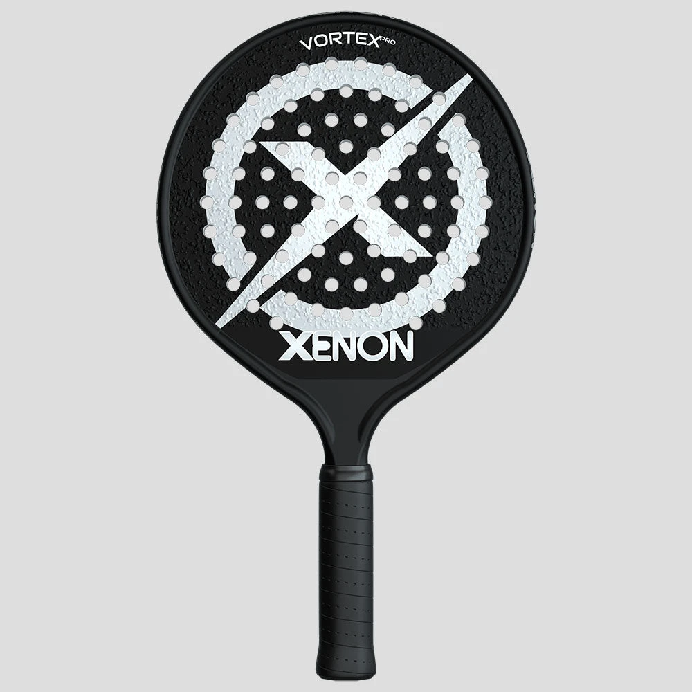 The Xenon Vortex Pro 370g platform tennis paddle lands in the higher end of “average” weight paddles on the market. Weighing in with an even head balance, this platform tennis paddle provides additional power from a heavier swing weight. Unlike many head-heavy paddles that feel bulky, this paddle feels just right for strong players who want power while maintaining playability.